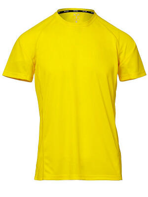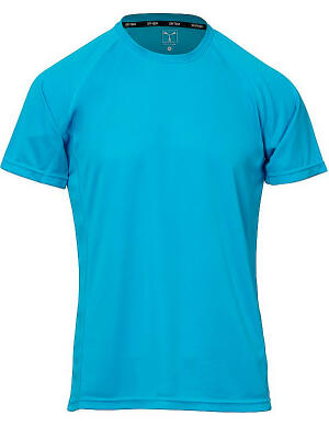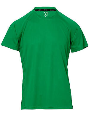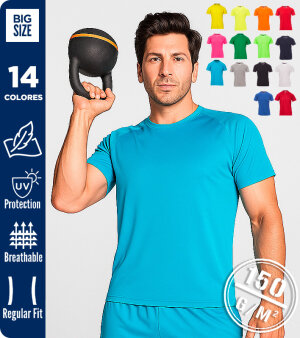 Camiseta técnica deportiva para hombre con mangas ranglán, doble costura lateral para mayor confort, cinta en el cuello.
