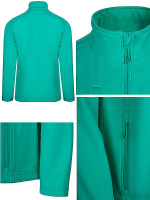 Cazadora soft shell UNISEX. 94% Poliéster, 6% Elastano. 280 g/m² Repelente al agua Forro en tejido polar suave y cálido Cierre con cremallera con protector de barbilla 3 bolsillos con cremallera Cremalleras al tono con tiradores en poliéster y terminación en plástico Parte trasera más larga y redondeada Tirador en interior del cuello para colgar