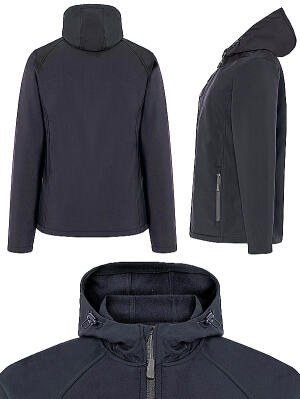 | Chaqueta softshell para mujer con capucha, ligeramente entalla con tejido interior de forro polar en el mismo tono. Tiene cremallera entera, 3 bolsillos laterales y 3 capas con membranas transpirables. Disponible en 3 colores y desde la talla S hasta la XL. |