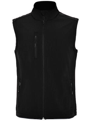 Chaleco softshell de 2 capas con cremallera frontal invertida. Interior en tejido micropolar. Dos bolsillos laterales
