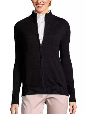 Chaqueta de punto para mujer cremallera completa, de punto liso fino, Mangas montadas ,cuello alto acanalado 1x1 Banda rayada interior contrastada,acanalado 1x1 en puños y cintura para una mayor sujeción ,apertura frontal con cremallera oculta ,sisas de moda y corte ajustado.