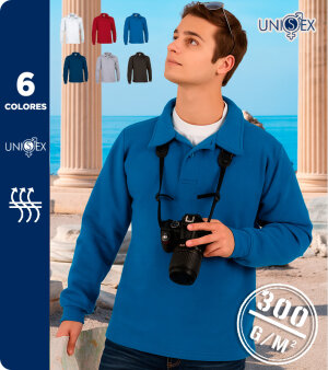 SUDADERA CUELLO POLO MANGA LARGA, CINTURA ABIERTA Y PUÑOS. 300 Grms. VALENTO APOLO